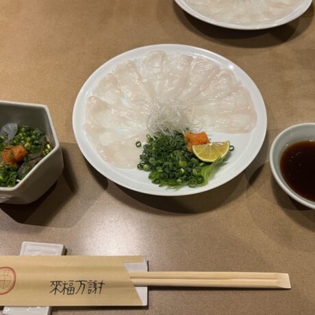 ふぐの湯引き、てっさ、唐揚げ、てっちり、雑炊まで楽しめる贅沢コース。飲み放題も充実。今年はインバウンド客(中国)はほとんどいませんでした。