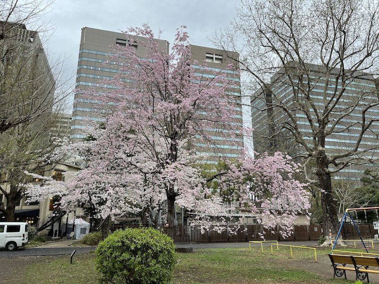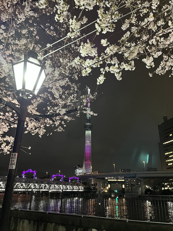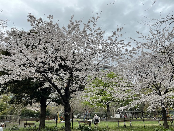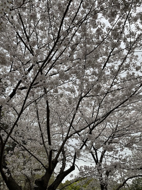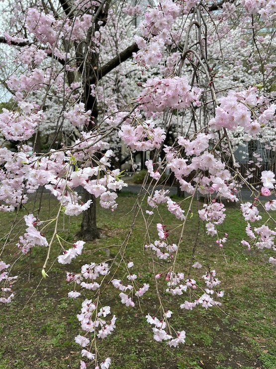 ときおり雨が降る中、昼・夜と二箇所(日比谷公園、隅田公園)をお花見ウォーキング。夜はウォーキング後に宴会に突入。