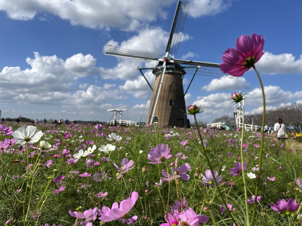 毎年10月に開催される佐倉コスモスフェスタは、佐倉ふるさと広場に約50万本のコスモスが咲き誇ります。花畑の散策だけでなく、地元の食材を使った屋台や農産物の直売など、佐倉の魅力を存分に楽しむことができます。