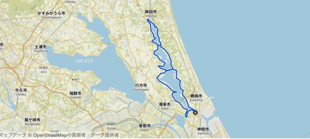 2日目:ホテルルートイン鹿嶋➡️🚴➡️鹿島神宮 一之鳥居➡️🚴➡️セブン-イレブン 鹿嶋津賀店➡️🚴➡️セブン-イレブン 鉾田梶山店➡️🚴➡️ローソン 鉾田札➡️🚴➡️セブン-イレブン 鹿嶋津賀店➡️🚴➡️セブン-イレブン 潮来宮前店➡️🚴➡️ホテルルートイン鹿嶋
